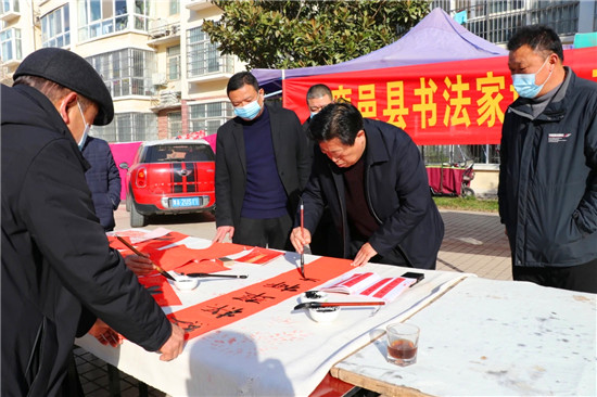 “春節(jié)前夕,縣書(shū)法家協(xié)會(huì)為群眾傾心打造文化盛宴,組織若干場(chǎng)義寫(xiě)春聯(lián)進(jìn)社區(qū)活動(dòng),旨在弘揚(yáng)祖國(guó)傳統(tǒng)文化,豐富群眾文化生活?!甭挂乜h書(shū)法家協(xié)會(huì)主席韓文甫說(shuō)。
