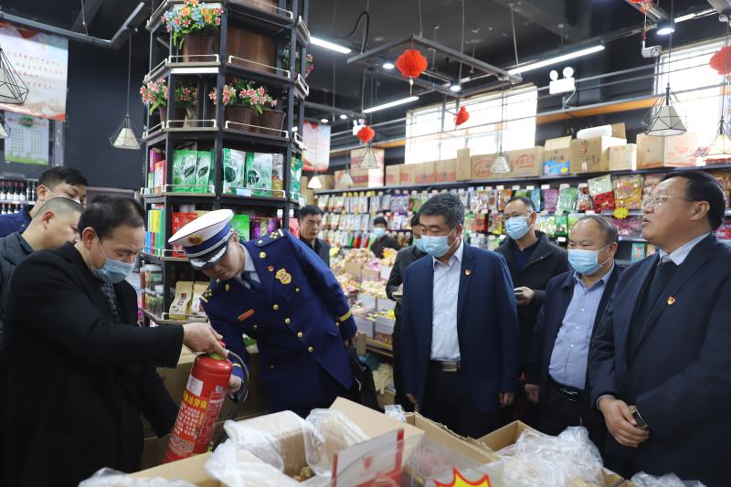 為落實河南省煙花爆竹禁售禁放工作電視電話會議和全市煙花爆竹禁售禁放暨春節(jié)期間污染防治工作會議精神,做好春節(jié)期間火災(zāi)預(yù)防、煙花爆竹禁售禁放工作,確保節(jié)日期間物資供應(yīng)充足、市場秩序持續(xù)穩(wěn)定,2月9日,周口港區(qū)黨委書記孫鵬前往轄區(qū)居民社區(qū)、市場督導(dǎo)春節(jié)期間各項保障工作落實情況。港區(qū)黨委委員杜廣賢、公安分局局長康群泉陪同。