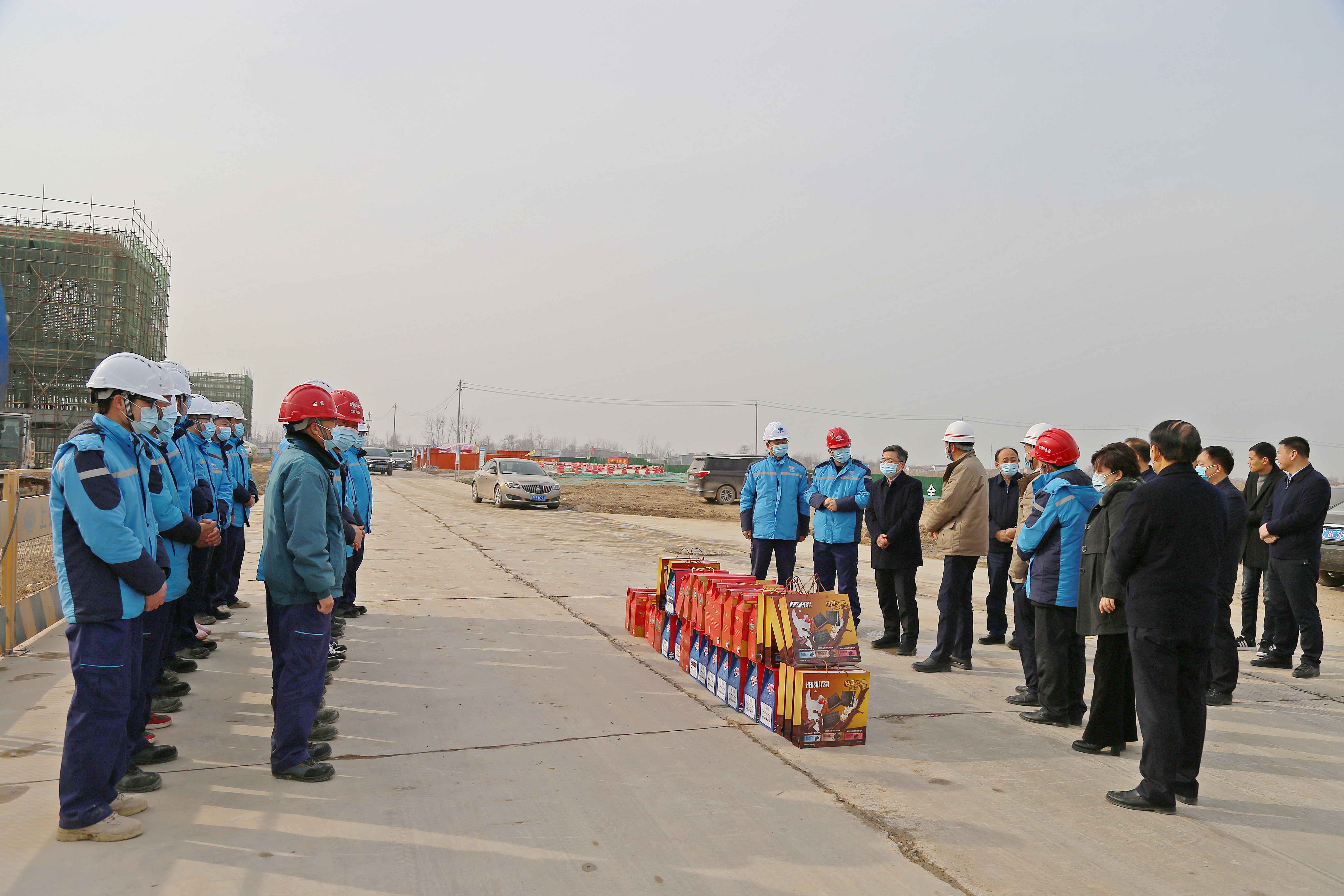在安鋼產(chǎn)能置換項目部和一期一步施工現(xiàn)場,皇甫立新、劉國慶代表縣四個班子和全縣人民向奮戰(zhàn)在安鋼產(chǎn)能置換一線的建設(shè)者們表示感謝,并致以新春的祝福?;矢α⑿抡f,安鋼產(chǎn)能置換項目自落戶沈丘以來,項目推進如此之快,可謂是日新月異,氣勢恢宏,振奮人心,這既離不開省委省政府、市委市政府的關(guān)心支持,更離不開建設(shè)者們的辛苦付出。希望廣大建設(shè)者能夠繼續(xù)發(fā)揚不怕苦不怕累的敬業(yè)精神,以時不我待的決心,全面加快項目建設(shè),確保如期實現(xiàn)2021年5月份建成出鋼的施工目標,繼續(xù)為周口、沈丘經(jīng)濟社會高質(zhì)量發(fā)展作出新的貢獻。