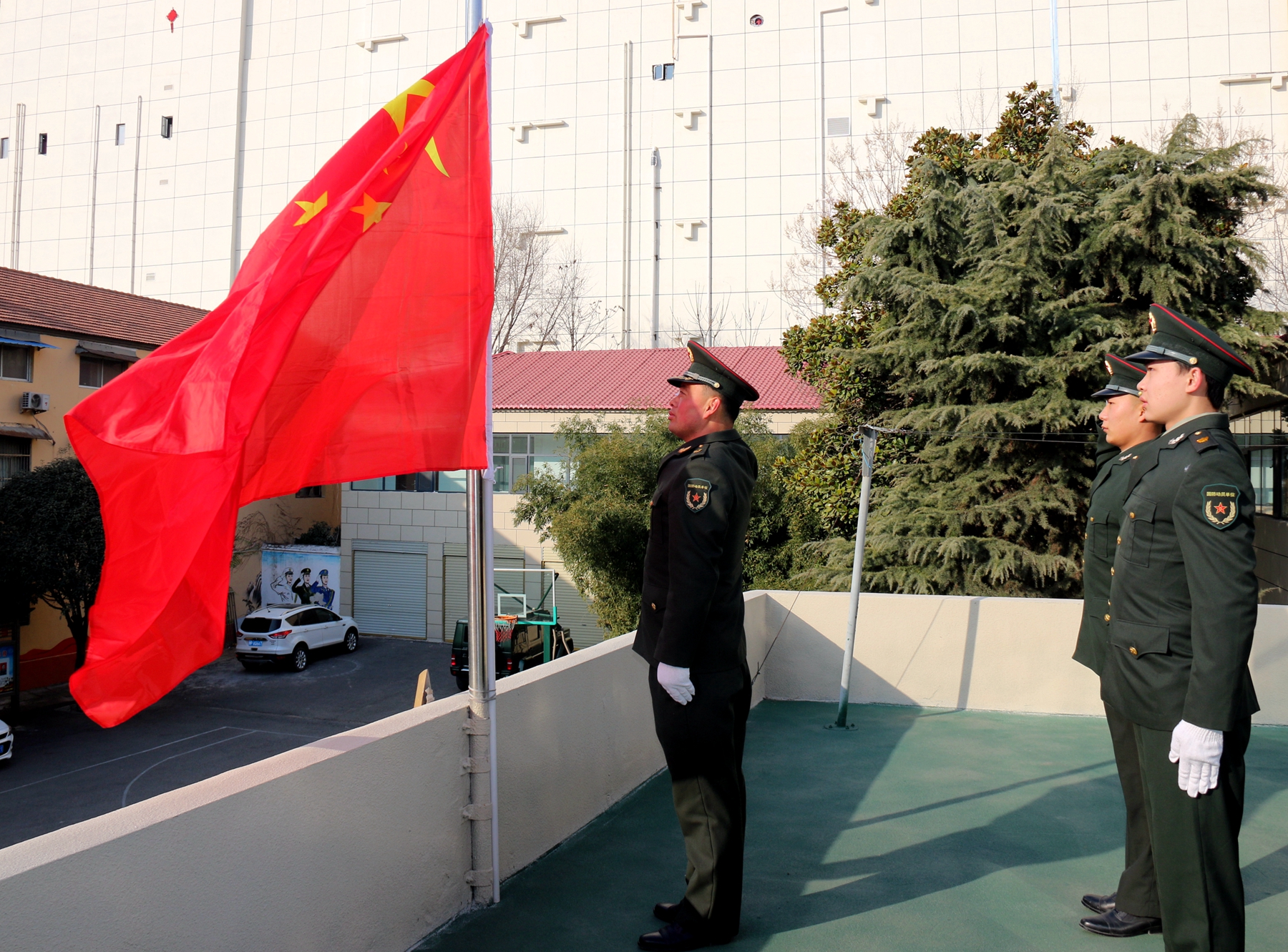 “起來,不愿做奴隸的人們……”,伴隨著激昂雄壯的《義勇軍進行曲》,鮮艷的五星紅旗冉冉升起。2月12日8 時,河南省鹿邑縣人武部干部職工和文職人員士氣高昂、精神抖擻、昂首挺胸、軍容嚴整,在機關(guān)樓前整齊列隊,舉行升國旗儀式。他們齊聲高唱國歌,莊嚴地向國旗行舉手禮,向偉大祖國、人民軍隊致以節(jié)日祝福和崇高敬意。