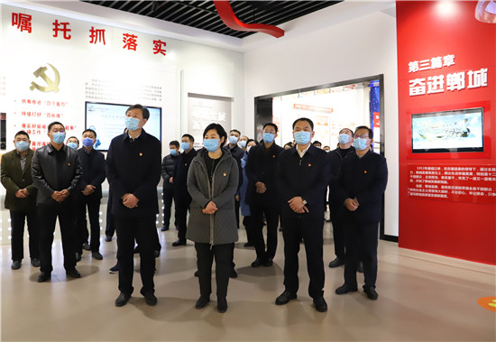 2月18日,新年上班第一天,市人大常委會副主任、鄲城縣委書記羅文閣,縣委副書記、縣長李全林帶領(lǐng)縣四個班子領(lǐng)導(dǎo)和部分縣直單位黨員干部,開展中共黨史學(xué)習(xí)教育活動,激勵全縣各級黨員干部不忘初心、牢記使命,在新時代不斷加強黨的建設(shè),更加緊密地團結(jié)在以習(xí)近平同志為核心的黨中央周圍,始終保持永不懈怠的精神狀態(tài)和一往無前的奮斗姿態(tài),振奮精神,堅定信心,銳意進取,真抓實干,奮力譜寫全面建設(shè)社會主義現(xiàn)代化鄲城新篇章,以優(yōu)異成績迎接建黨100周年。