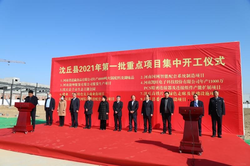 2月20日上午 ,沈丘縣舉行了2021年第一批重點項目集中儀式。此次集中開工項目共9個,總投資57.57億元,2021年計劃投資26.2億元。