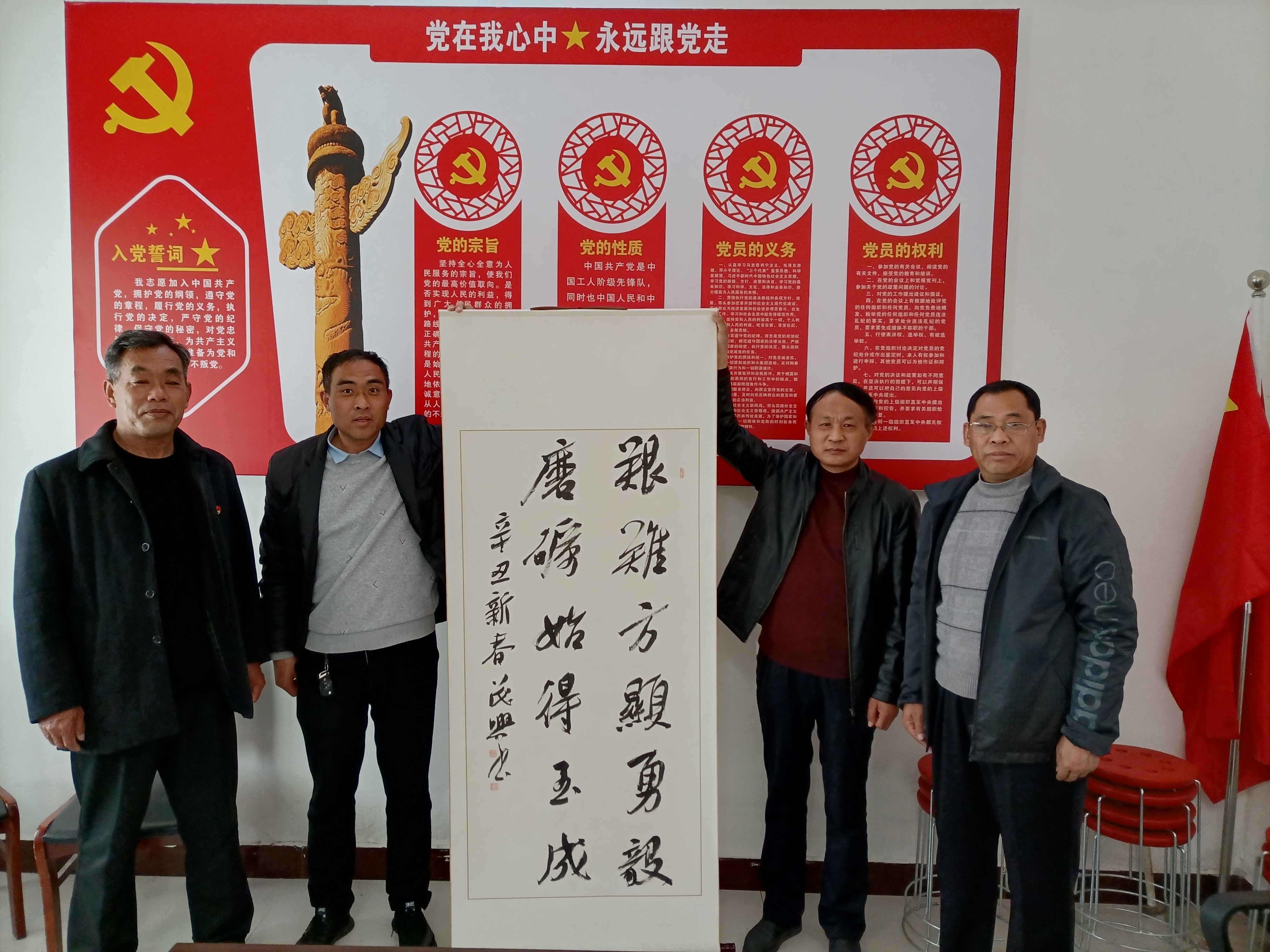 參與活動的書法家們都來自于太康縣中書協(xié)和省書協(xié)會員,書寫內(nèi)容全部來自于習(xí)近平總書記的經(jīng)典講話,裝裱之后送到全縣榮獲省、市、縣先進(jìn)黨支部的行政村,內(nèi)容突出新時代的“新”,涉及“永遠(yuǎn)跟黨走”,成為宣傳黨建知識的新載體、教育群眾干部的新陣地。