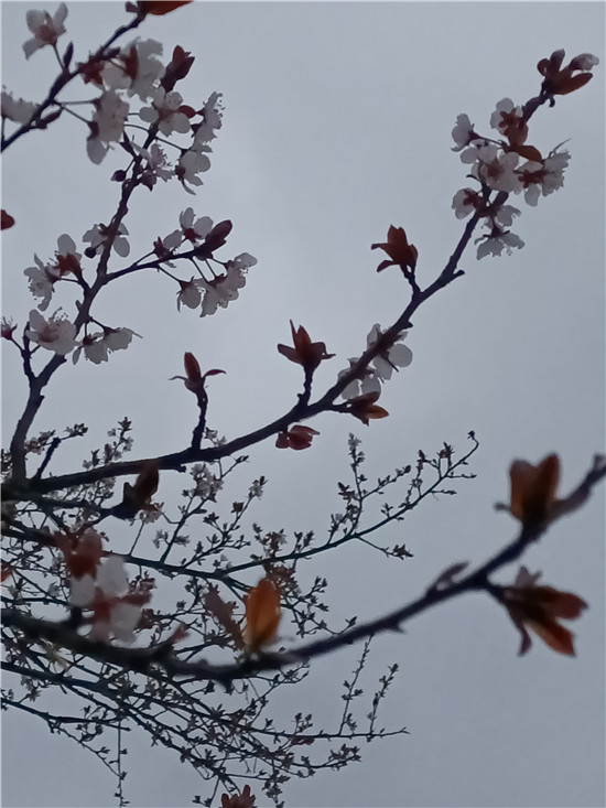 黃色的迎春花似云霞滿天,白色的玉蘭花婀娜多姿,紅色玉蘭含苞待放,即將飄零的臘梅老也留戀枝頭,舍不得離去,鮮艷的百花醉得垂柳在水面上扭起纖細(xì)的枝條。