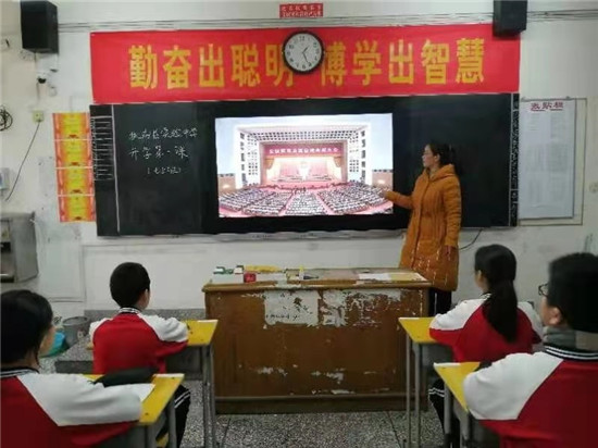 “在浙江省嘉興市有一處美麗的風景——南湖,不僅以秀麗的煙雨風光享有盛名,而且還因中國共產(chǎn)黨第一次全國代表大會在這里勝利閉幕而備受世人矚目……”3月1日上午8時30分,記者在扶溝縣回族小學(xué)看到,學(xué)校全體師生正在同一時間觀看“開學(xué)第一課”。