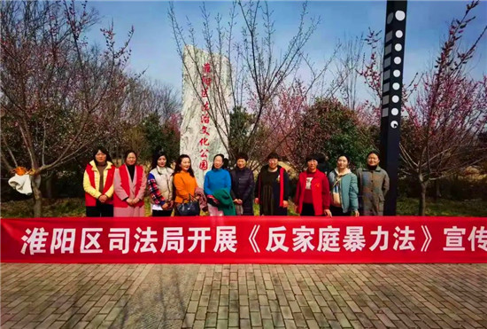 座談會結束之后,大家化身普法志愿者,前往淮陽主題森林公園·梅園,給前來賞花游玩的群眾普及法律知識,針對女性同胞講解婦女兒童保護、化妝品安全、財產權益、婚姻家庭權益、家庭暴力等方面的知識,進一步加強婦女們的法律意識。