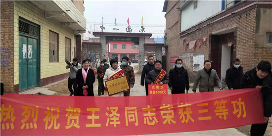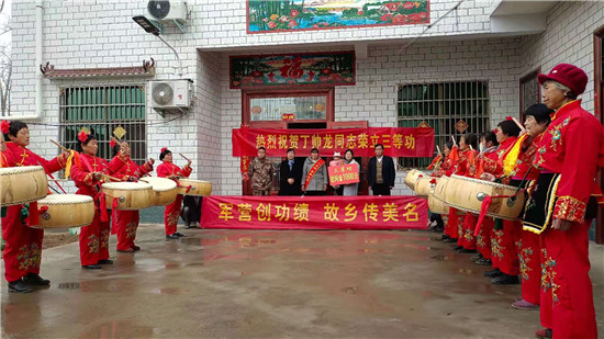 太康縣龍曲鎮(zhèn)的4名現役軍人在部隊榮立“三等功”,日前,太康縣龍曲鎮(zhèn)退伍軍人服務站站長、市人大代表劉志華在太康縣軍人事務局領導的帶領下,吹著嗩吶、打著腰鼓、扯著橫幅,把立功喜報和慰問金,送到龍曲鎮(zhèn)張山行政村張鵬舉、黑李王行政村丁帥龍、軒莊行政村師行光、河坡行政村王澤家中,營造了一人當兵、全家光榮的風尚,堅定了軍人建功立業(yè)的信心。
