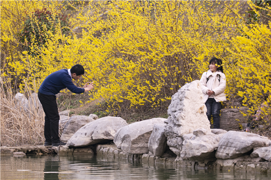 乍寒乍暖的二月天,讓迎春的花兒趕趟兒似的陸續(xù)綻開,桃紅柳綠春意濃,市民們走出家門,帶著孩子踏青賞花。文昌大道上的周口公園內(nèi)垂柳綠意濃,桃花、櫻花、玉蘭花次第綻放,成為市民們春天里賞花的好去處。