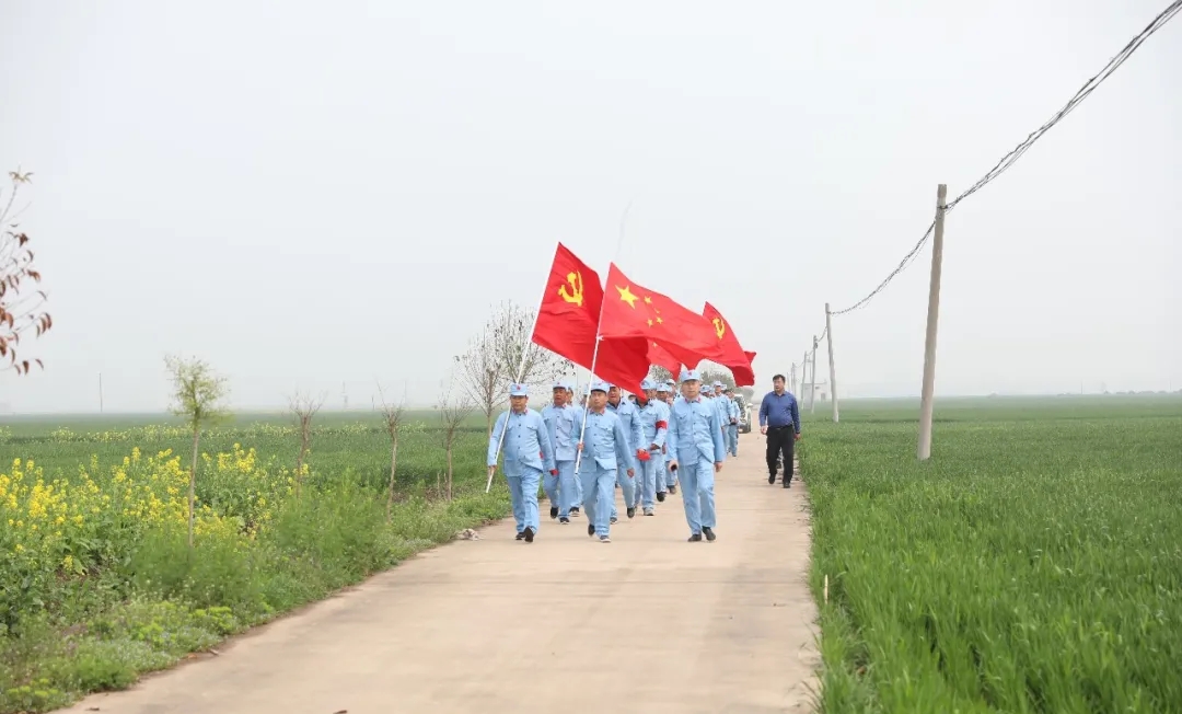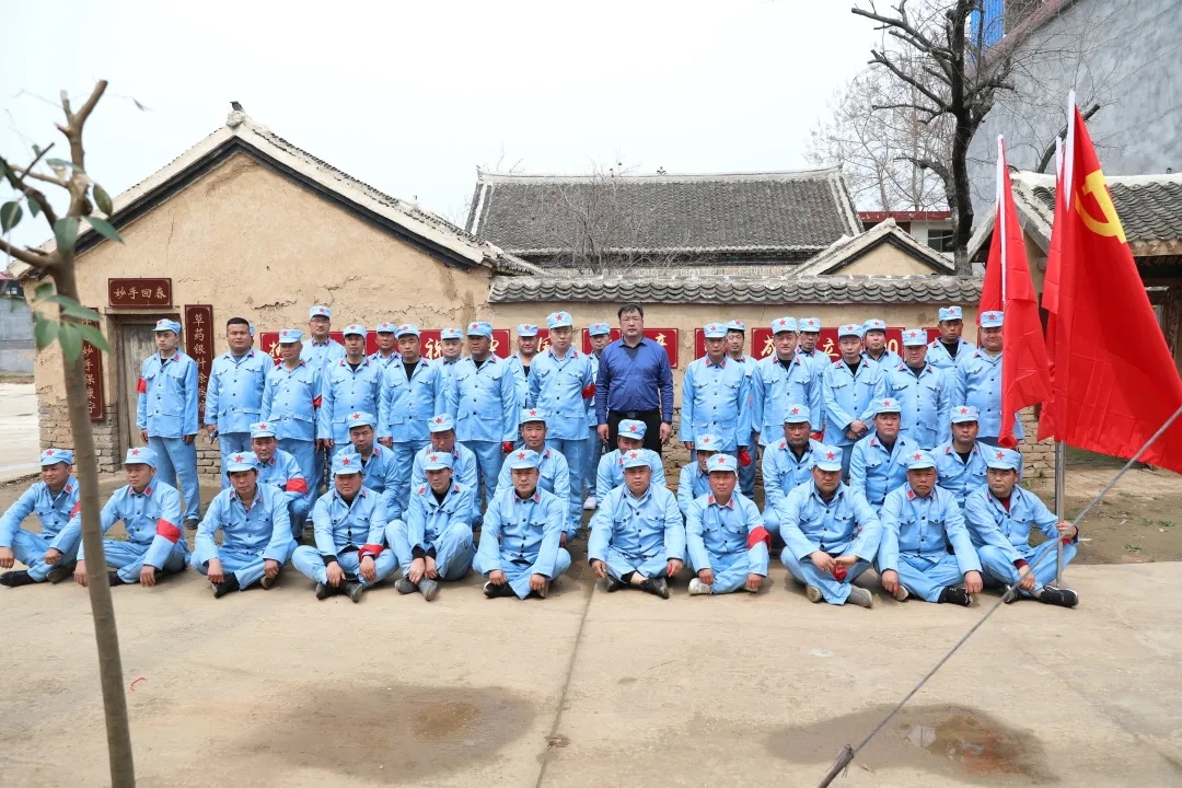 “我一定要跟著大部隊(duì)走,絕不掉隊(duì),不給紅軍前輩抹黑?!眲倓傋鐾晔中g(shù)的七一村黨支部書(shū)記何治安斬釘截鐵地說(shuō)。在七二村,熱情好客的七里倉(cāng)群眾不僅給“大軍”送來(lái)了西紅柿、黃瓜、茶雞蛋、香蕉等補(bǔ)給品,還表演了“祖國(guó)你好”、“美麗生活”等扇子舞,再現(xiàn)了當(dāng)年紅軍到哪都受人民群眾擁戴的情景,同志們的疲憊一下子煙消霧散.....按照拓展行程安排,在盆李村的“周口市第一個(gè)農(nóng)村黨支部舊址”,同志們進(jìn)行了參觀瞻仰和重溫入黨誓詞等活動(dòng),回顧了歷史,緬懷了先烈,震撼了心靈,錘煉了黨性。