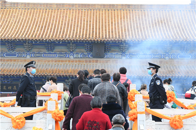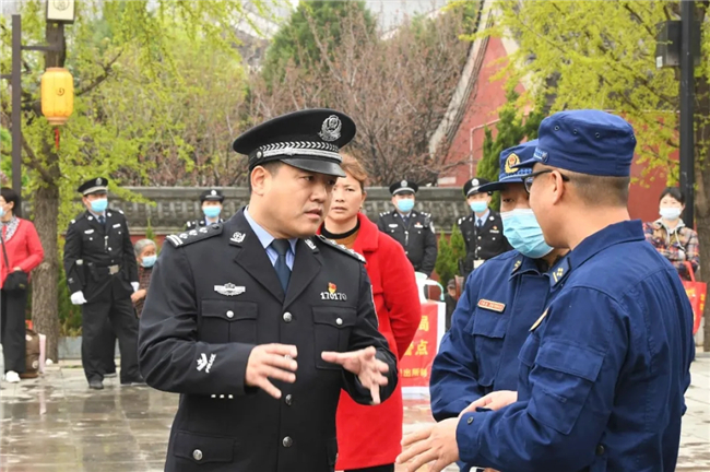 在太清宮、明道宮景區(qū)主要活動(dòng)點(diǎn),全力做好人流、車流疏導(dǎo)和受理報(bào)警求助等工作;執(zhí)勤民警還及時(shí)為走失兒童家長(zhǎng)、行動(dòng)不便的老人等提供熱情周到的服務(wù);民輔警積極向過(guò)往香客宣傳“金鐘罩”防詐騙知識(shí),耐心細(xì)致地手把手教群眾注冊(cè)“金鐘罩”;交警大隊(duì)根據(jù)職責(zé)任務(wù)設(shè)置了駐地警衛(wèi)組、機(jī)動(dòng)應(yīng)急組、事故應(yīng)急組,大隊(duì)領(lǐng)導(dǎo)靠前指揮,因情施策,合理調(diào)度,全力保障活動(dòng)現(xiàn)場(chǎng)道路交通安全暢通。③2