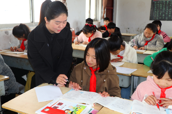 個(gè)子不高,皮膚黝黑,臉上總帶著些許微笑,4月1日上午,太康縣龍曲鎮(zhèn)潮坡小學(xué)27歲的建廷廷正在給學(xué)生們上數(shù)學(xué)課。