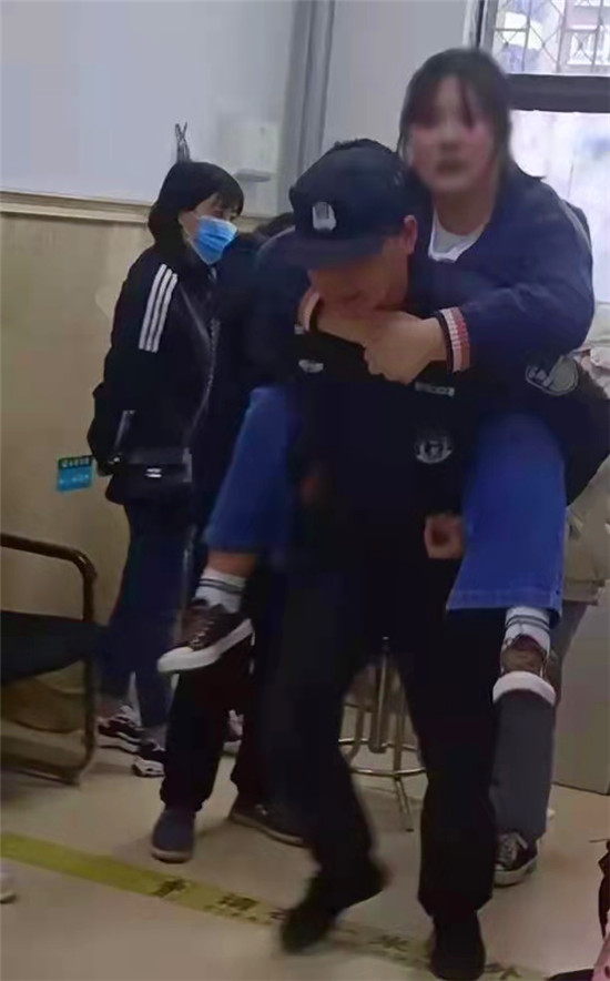 當(dāng)日17時許,在項城市東大街路口發(fā)生一起交通事故,一輛三輪車將一名女孩撞倒在地,女孩腿部受傷呻吟不止。因為沒有家人陪伴,巡邏至此的項城市公安局特巡警大隊隊員任輝輝看到后,立即將受傷女孩背起緊急送往最近的醫(yī)院進(jìn)行救治。在女孩得到救治生命體征正常后,特警向女孩詢問其家人聯(lián)系方式,不久后其父母趕到醫(yī)院陪護(hù)。