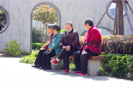 市民在街頭游園里聊天