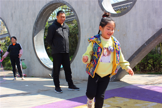 “之前小長(zhǎng)假一般都是宅在家里看電視,去景區(qū)玩吧人太多,帶著孩子也不方便,現(xiàn)在家門前就是景,帶著孩子出來轉(zhuǎn)轉(zhuǎn),心情非常好?!闭诖髴c路旁的小游園里散步的張女士說。