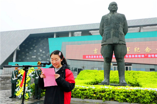 4月2日,扶溝高中校團委組織部分師生,懷著對烈士無限崇敬的心情,來到吉鴻昌將軍紀(jì)念館,祭掃吉鴻昌將軍銅像,緬懷吉鴻昌將軍。祭掃活動由高一團支部負(fù)責(zé)人吳肖老師主持。