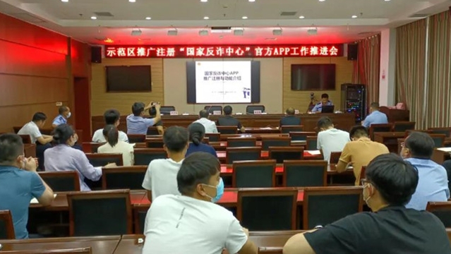 8月11日,示范區(qū)召開推廣注冊“國家反詐中心”官方APP工作推進會,安排全區(qū)反電詐工作,現(xiàn)場演示并部署推廣注冊“國家反詐中心”官方APP工作任務。區(qū)二級調(diào)研員丁有亮,示范區(qū)公安分局局長何學民出席會議。