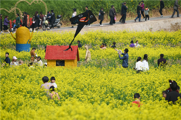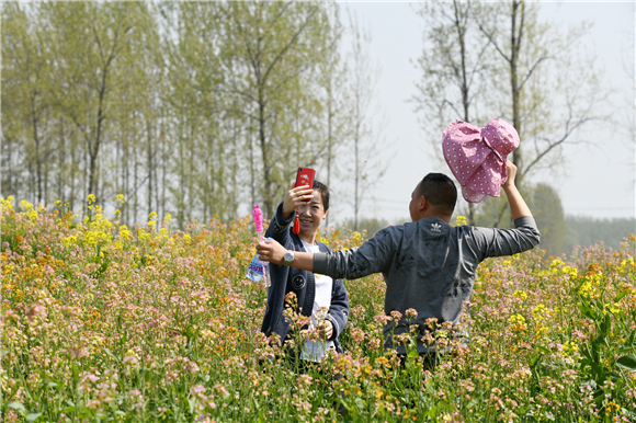 4月10日上午10時,商水縣首屆金色花田樂游匯在鄧城鎮(zhèn)沙河南岸隆重開幕,6000多畝的多彩油菜花,燦如云錦,構(gòu)成今春沙河上游最為醉人的生態(tài)風景,吸引著人們從四面八方,紛至沓來,賞花游水,享受周末的休閑時光。③5