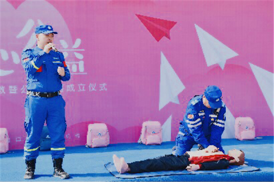 活動(dòng)現(xiàn)場(chǎng),藍(lán)天救援隊(duì)隊(duì)長孟坤以多年救援經(jīng)驗(yàn),與隊(duì)員們互相配合,演示如何正確穿戴救生衣、如何正確實(shí)施心肺復(fù)蘇術(shù)等,還生動(dòng)演繹了當(dāng)學(xué)生遇到有人落水等突發(fā)情況,如何在保證自己不受傷害的情況下實(shí)施救援。