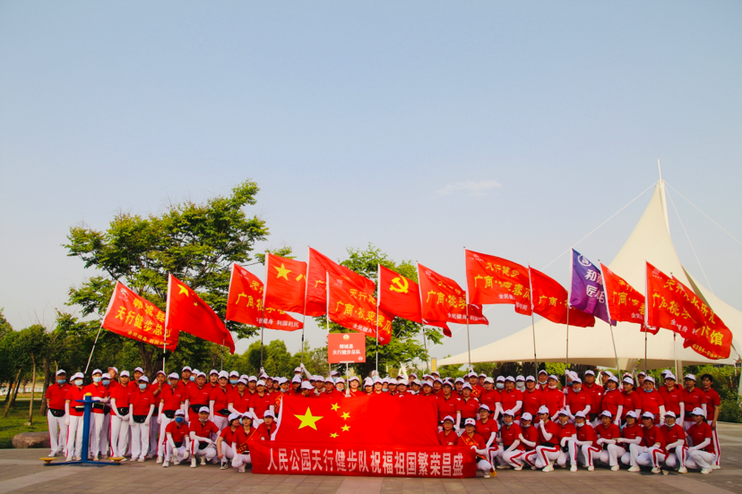 活動(dòng)現(xiàn)場(chǎng),隨著口令響起,健步隊(duì)隊(duì)員們身穿鮮艷的紅色衣服,肩扛黨旗、國(guó)旗、隊(duì)旗緩緩出發(fā),邁著矯健的步伐、整齊劃一的動(dòng)作,按照既定路線繞湖行走。隊(duì)員們一邊呼吸著新鮮空氣欣賞人民公園的春意景象,一邊精神抖擻、信心滿滿地走出了勞動(dòng)人民的自信。