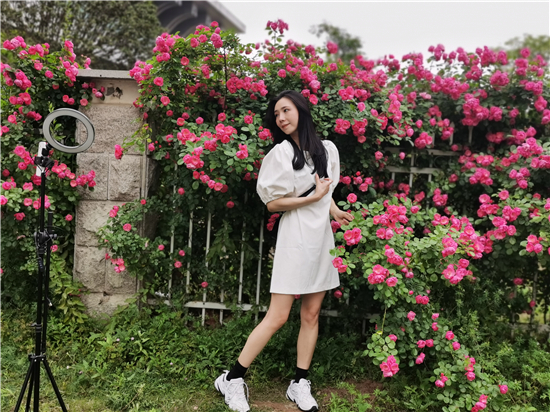 “每年一到薔薇盛開的時候,朋友圈都有人曬這堵‘網(wǎng)紅墻’。”5月4日,一位年輕的姑娘在叢叢簇簇的 “薔薇花墻”前自拍,“一直以來都想來看看,但每年都錯過了薔薇花期最盛的時候,今年趁五一假期,我也要拍組照片, 在朋友圈內(nèi)炫一下咱們家門口的美景?!?/p>