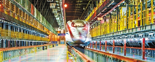 鄭州南動車所對標準組動車進行檢修。近年來,高鐵新線的陸續(xù)開通,為鄭州逐步建設成國際性綜合交通樞紐提供了強勁動力。 王 錚攝(中經視覺)