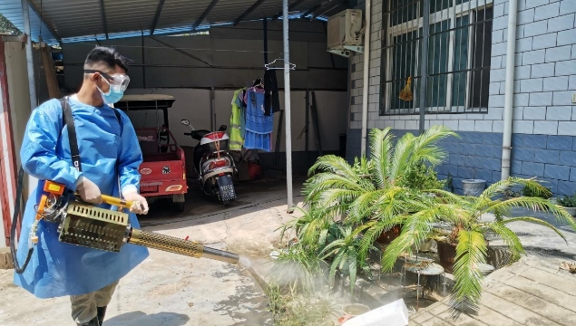 在女媧景區(qū),只見老關(guān)和其他3名消殺人員發(fā)動機(jī)器、拉出噴管、手提噴槍,一邊前進(jìn),一邊揮動,白色水霧隨之噴涌而出,所到之處細(xì)菌病毒“無處遁形”。大家齊心協(xié)力,很快就把景區(qū)的角角落落消殺個遍。