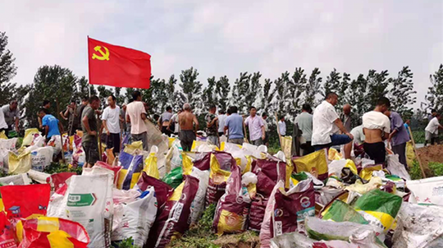 一個支部,一座堡壘,在扶溝縣桐丘街道黨工委、街道辦的正確領(lǐng)導(dǎo)下,鄭關(guān)居委會充分發(fā)揮基層黨組織的戰(zhàn)斗堡壘作用,動員組織黨員干部和群眾奮力抗洪搶險,筑起了一道洪水沖不垮的“鋼鐵長城”。 賈魯河鄭關(guān)段河堤長3.5公里,大堤不同程度受損,加上面臨著上游泄洪壓力,河堤極易出現(xiàn)險情,嚴(yán)重威脅著人民群眾的生命財(cái)產(chǎn)安全。災(zāi)情就是命令,身為黨支部書記的張景義始終走在抗洪救災(zāi)的第一線,發(fā)揮黨員的先鋒模范作用,讓群眾在災(zāi)難面前始終感受到黨的溫暖。