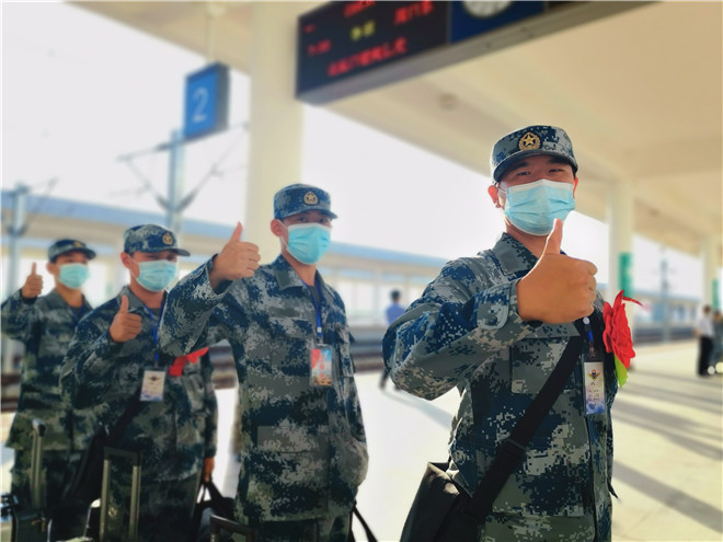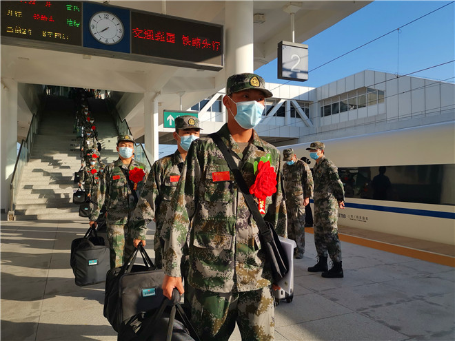 披紅綬帶,胸佩光榮花。候車大廳內(nèi),經(jīng)過役前訓(xùn)練的新兵們已經(jīng)有了“兵樣子”,站姿挺拔,整齊列隊(duì),戎裝待發(fā)。根據(jù)疫情防控要求,不再集中舉行送行送兵,新兵們將分批次從周口出發(fā),開啟他們的軍旅新征程。湯維政、張?jiān)鲗θ胛樾卤硎咀YR,對他們積極響應(yīng)祖國召喚,踴躍報(bào)名參軍,以實(shí)際行動(dòng)依法履行服兵役義務(wù)表示贊揚(yáng)。同時(shí)希望他們到部隊(duì)后,迅速投入新的生活,時(shí)刻嚴(yán)格要求自己,珍惜青春、安心服役,加強(qiáng)學(xué)習(xí)鍛煉,爭當(dāng)周口好兵,嚴(yán)守部隊(duì)紀(jì)律,苦練過硬本領(lǐng),努力把自己鍛煉成有靈魂、有本事、有血性、有品德的新一代革命軍人。