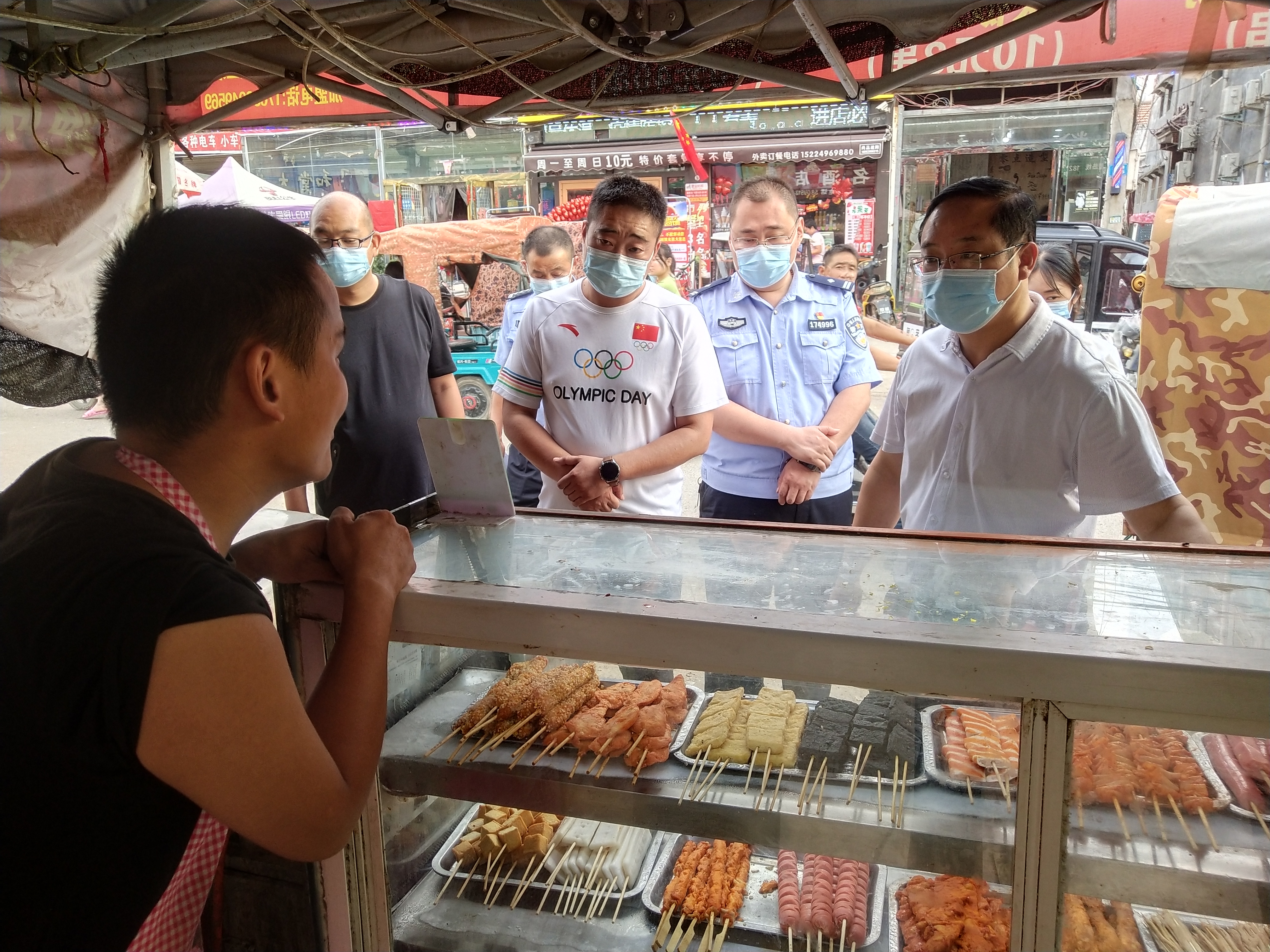 “你們這個(gè)超市經(jīng)營(yíng)面積多少?配備多少消防栓、滅火器?有幾個(gè)逃生通道?員工是否熟知消防安全常識(shí)?油炸熟食肉類食品是如何保障質(zhì)量的……”“咱樓上樓下?tīng)I(yíng)業(yè)面積共2000平方米,配備20個(gè)消防栓、60個(gè)滅火器,有2個(gè)逃生通道,每周都對(duì)員工進(jìn)行消防安全演練,每一批食品都有檢測(cè)報(bào)告……”10月1日下午,商水縣平店鄉(xiāng)黨委書(shū)記段文海、鄉(xiāng)長(zhǎng)位望喜、主管安全生產(chǎn)的副鄉(xiāng)長(zhǎng)劉春苗帶隊(duì),組織鄉(xiāng)派出所、市場(chǎng)監(jiān)督所相關(guān)人員到安全生產(chǎn)重點(diǎn)場(chǎng)所“萬(wàn)果園超市90號(hào)”連鎖店開(kāi)展國(guó)慶節(jié)安全生產(chǎn)暗訪檢查,超市負(fù)責(zé)人呂四偉詳細(xì)介紹了安全經(jīng)營(yíng)情況。