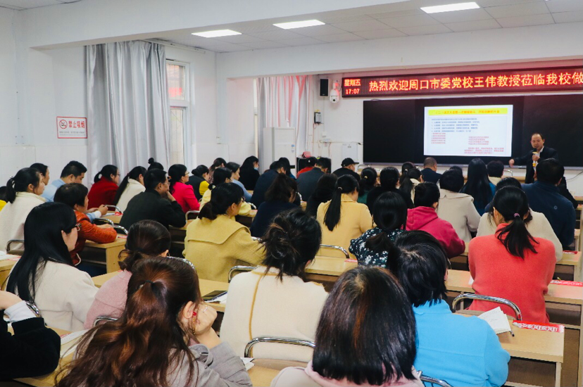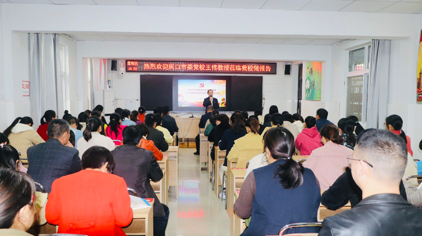 宣講會上,市委黨校宣講團講師王偉以“深入學習貫徹市五次黨代會精神、開啟全面建設社會主義現代化周口新征程”為主題,從充分認識市五次黨代會的重大意義、準確把握市五次黨代會的精神要義、全面落實市五次黨代會的目標任務三方面,詳盡解讀了市五次黨代會主旨報告的精神實質和豐富內涵。整場報告脈絡清晰、論述深刻、內容豐富,既有深入淺出的理論闡述,又有結合我市發(fā)展的實例分析,更有教育實踐層面的對策思考,為該校教職工深入、完整、系統(tǒng)地領會市五次黨代會精神,有力推進貫徹落實黨代會精神提供了一把“金鑰匙”。