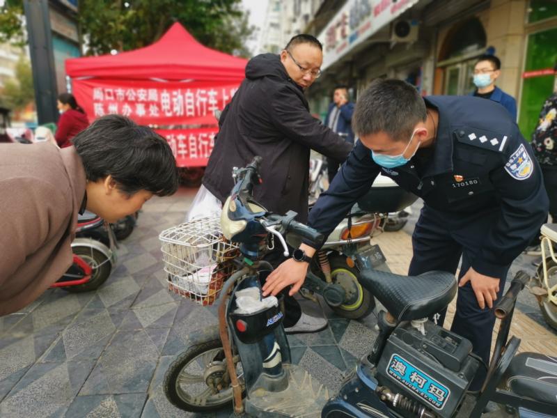 在中心城區(qū)交通大道與五一路交叉口的陳州辦事處電動(dòng)自行車上牌處,不少車輛已經(jīng)上過牌照停放在規(guī)定地點(diǎn)。“我是前天上的牌照,家里需要,我就買了輛新電動(dòng)自行車,各項(xiàng)材料齊全,拿到上牌點(diǎn)很快就完成了上牌。”家住附近的市民李女士說。