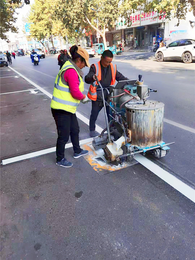 10月26日晚6時許,在周口大道與文體路交叉口附近,幾名工作人員正在使用熱熔畫線機,對路面上不太清晰的斑馬線進行重新施劃?!奥访鏄司€是公路的‘無言哨兵’,覆畫后的道路交通標線醒目美觀,一方面消除了安全隱患,保障了交通安全和暢通,另一方面也極大地美化、扮靚了沿線路域環(huán)境,成為城市文明的一道風景線?!痹撠撠熑苏f。