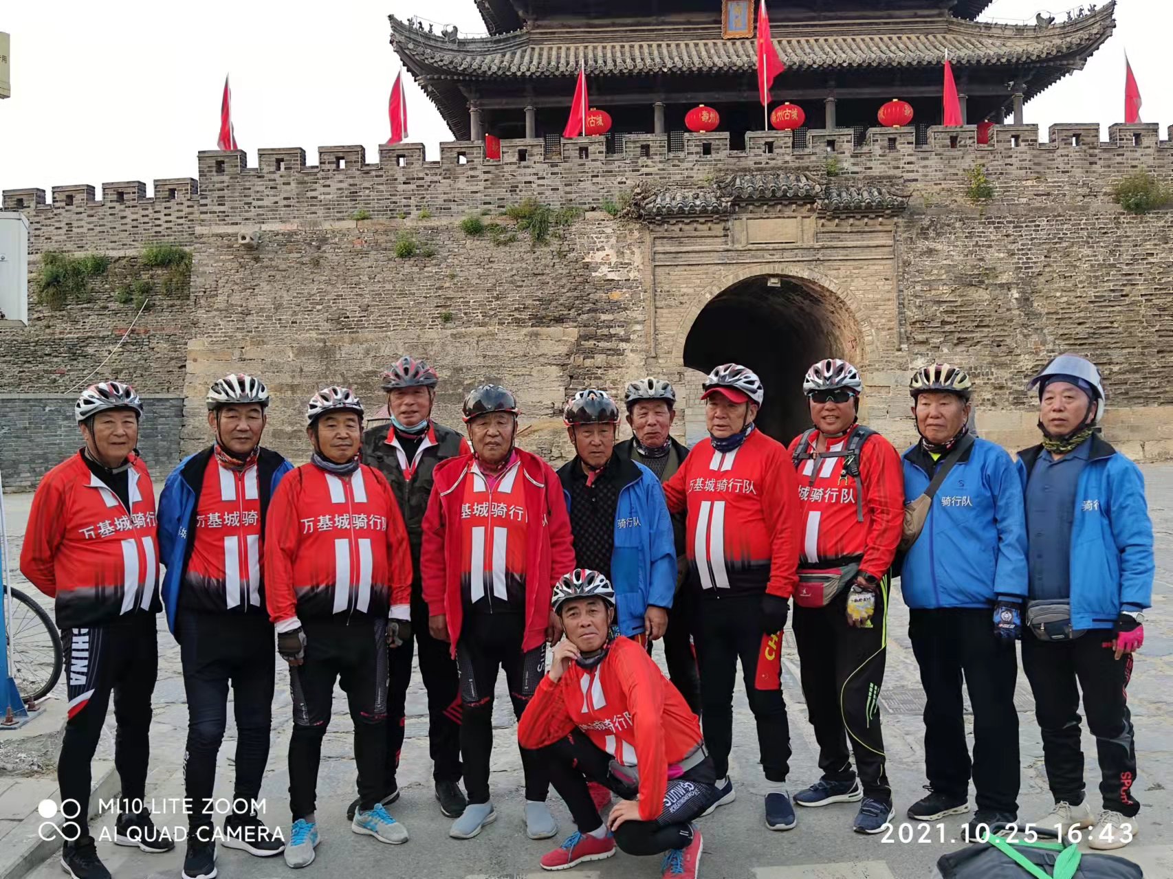 周口“馬扎子”老年騎行隊(duì)在壽縣古城門(mén)