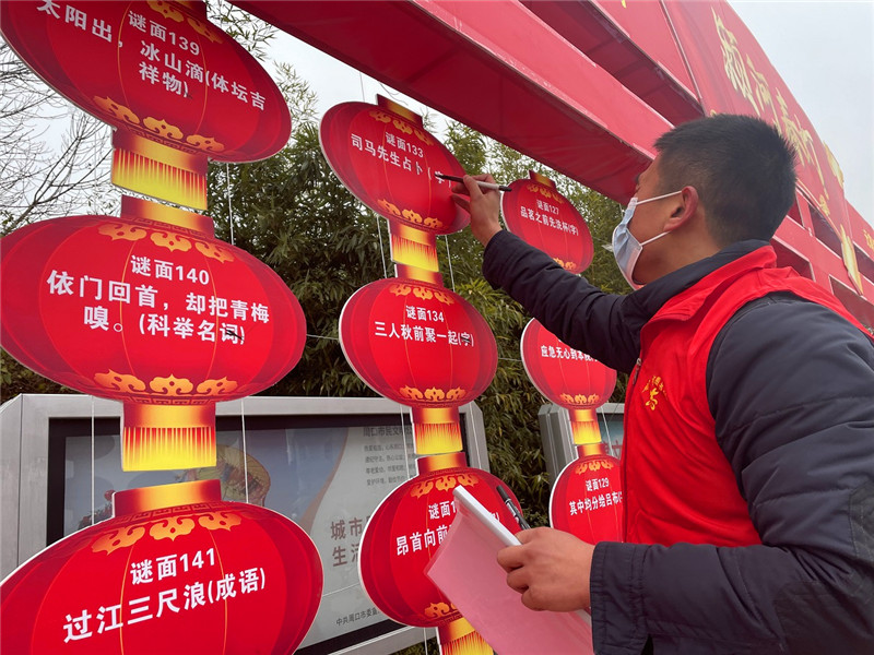 “阿姨您好!148號(hào)燈謎的謎底是‘香皂’。”2月15日,在周口市文化藝術(shù)中心西廣場,正在舉行“潁河春燈——元宵燈謎猜猜猜”活動(dòng)。“我最喜歡猜燈謎了,猜對(duì)以后我還能拿到一個(gè)玩具小飛機(jī),真開心!”說話的這個(gè)小男孩姓汪,今年8歲,在今天這場猜燈謎活動(dòng)中,他是第一位給出正確答案的參與者。