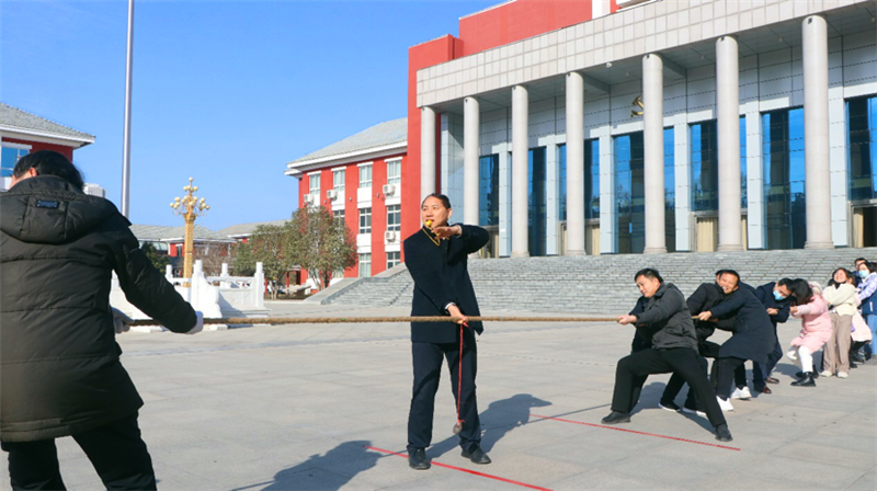 在拔河比賽中,校黨委書(shū)記、常務(wù)副校長(zhǎng)孟慶武親自當(dāng)裁判,各支部代表隊(duì)都派出最強(qiáng)陣容,齊心協(xié)力,勇?tīng)?zhēng)第一。隨著裁判的一聲哨響,比賽正式開(kāi)始,各位參賽隊(duì)員雙手緊握長(zhǎng)繩,壓低重心、咬緊牙關(guān),鉚足勁拼命往后拉。比賽過(guò)程中,參賽隊(duì)員心往一處想,力往一處使,齊心協(xié)力、勇往直前,用汗水詮釋了永不放棄、永不氣餒的拼搏和團(tuán)隊(duì)精神,激發(fā)了攜手奮進(jìn)、勇?tīng)?zhēng)一流的熱情。