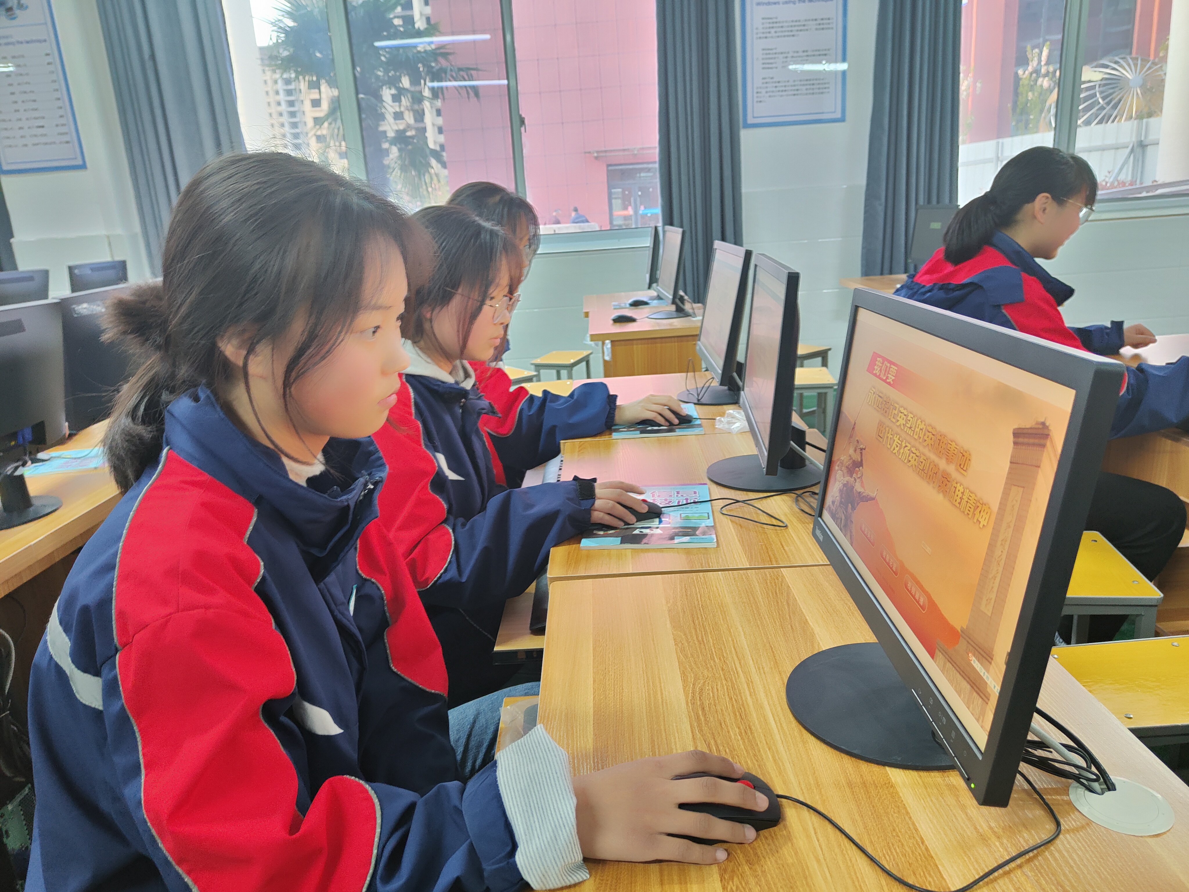 課堂上,在老師的指導(dǎo)下,同學(xué)們打開《中華英烈網(wǎng)》,為自己心目中的英雄點(diǎn)燭、獻(xiàn)花,“緬懷英烈,感恩祖國?!薄叭缃裆胶右褵o恙,烈士們安息吧!”“請(qǐng)黨放心,強(qiáng)國有我?!薄瑢W(xué)們紛紛留言表示,要繼承革命先烈遺志,努力學(xué)習(xí),報(bào)效祖國。③8