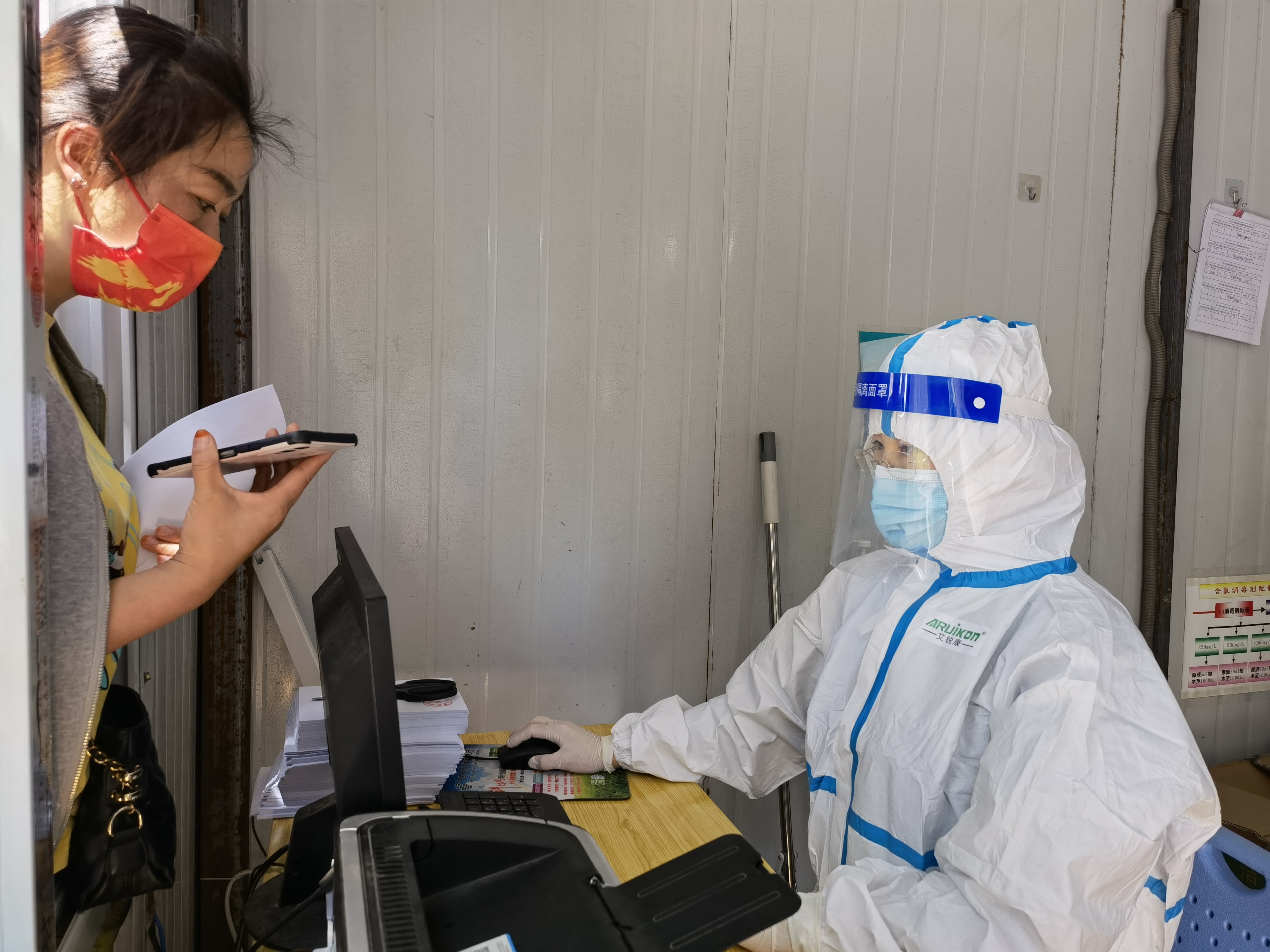 5月4日,記者在周口東新醫(yī)院核酸檢測(cè)點(diǎn)見到了全副“武裝”的王琳,她坐在核酸檢測(cè)點(diǎn)的核酸檢測(cè)報(bào)告打印崗位上,身穿防護(hù)服,認(rèn)真細(xì)致為需要幫助的群眾打印報(bào)告?!按蟮杰囕v安排,小到口罩發(fā)放、體溫計(jì)調(diào)配等防護(hù)物資保障都要協(xié)調(diào)統(tǒng)籌,一刻也不能停歇,我就想著別有什么地方落下了。安排好一切后,我回到醫(yī)院,同事們都前往全員核酸檢測(cè)一線了,這里人手不太足,我頂上。做好后勤保障工作,解決一線醫(yī)護(hù)人員的后顧之憂是我的責(zé)任和義務(wù)?!蓖趿照f(shuō)。