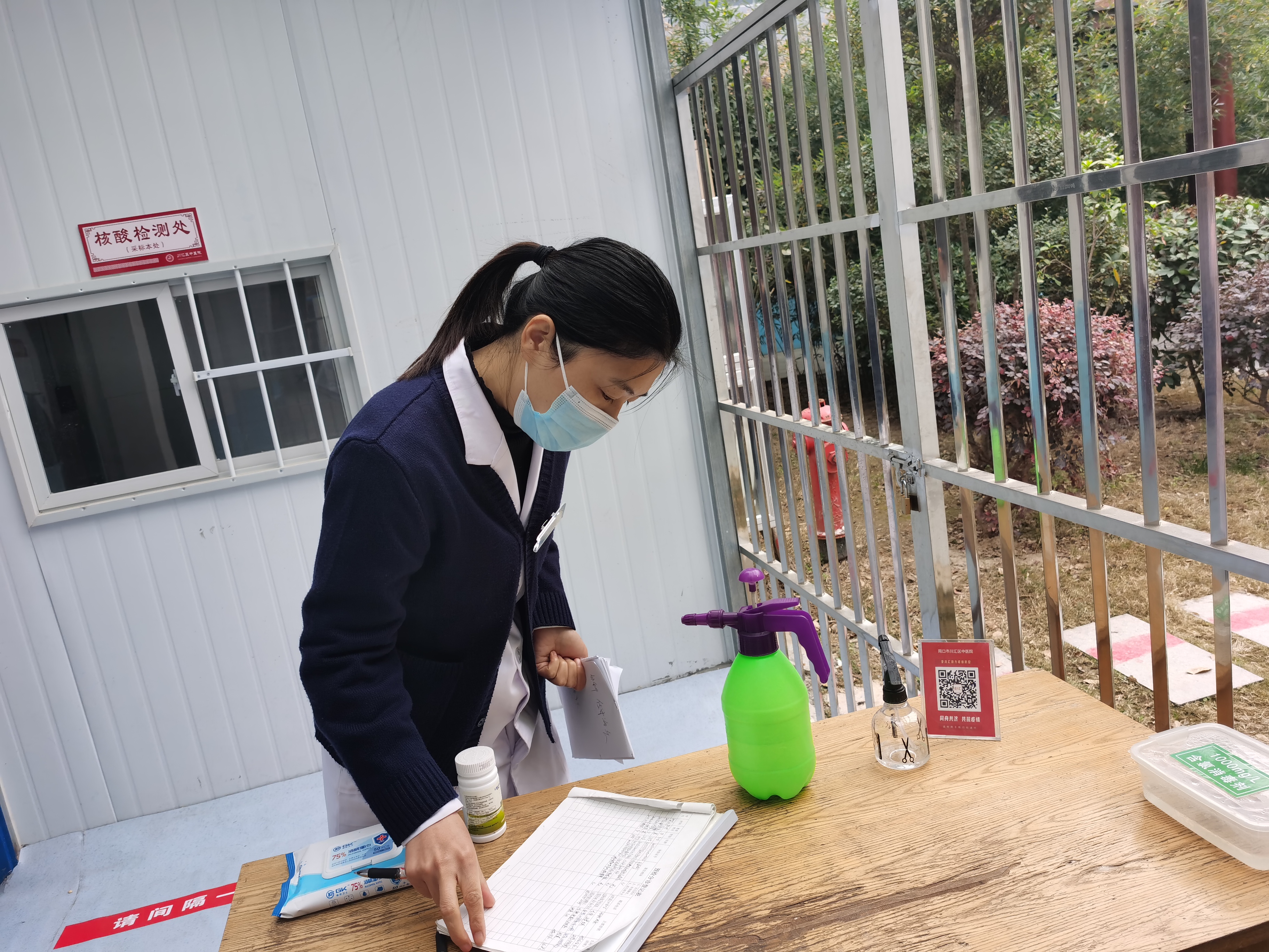 隨著檢測工作的深入,為了預(yù)防群眾交叉感染的情況出現(xiàn),根據(jù)當(dāng)?shù)卣笈韸檴櫵齻儓?zhí)行了入戶采集任務(wù),同時鄉(xiāng)政府派志愿者來協(xié)助工作,由于志愿者防護(hù)知識薄弱,彭姍姍現(xiàn)場對志愿者進(jìn)行了防護(hù)培訓(xùn)?!半m然采集任務(wù)時間長、任務(wù)重,但我永遠(yuǎn)沖在第一線。”彭姍姍說。②8