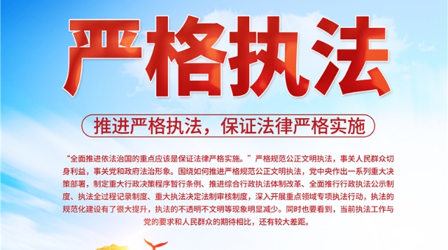 “全面依法治國的重點應該是保證法律嚴格實施?!眹栏褚?guī)范公正文明執(zhí)法,事關人民群眾切身利益,事關黨和政府法治形象。