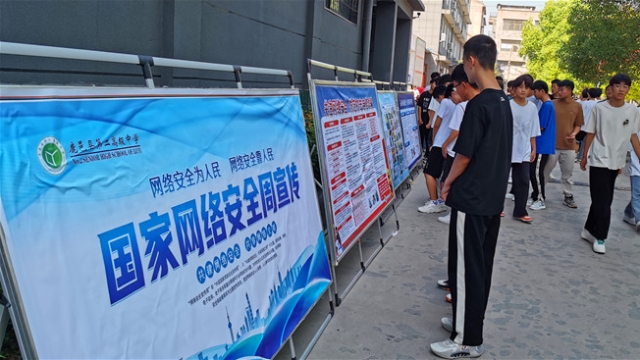 9月6日是國家網(wǎng)絡宣傳周校園日,鹿邑縣第二高級中學校園里整齊地擺放出數(shù)塊制作精美、內容充實的網(wǎng)絡安全宣傳展板,引起師生們駐足觀看。