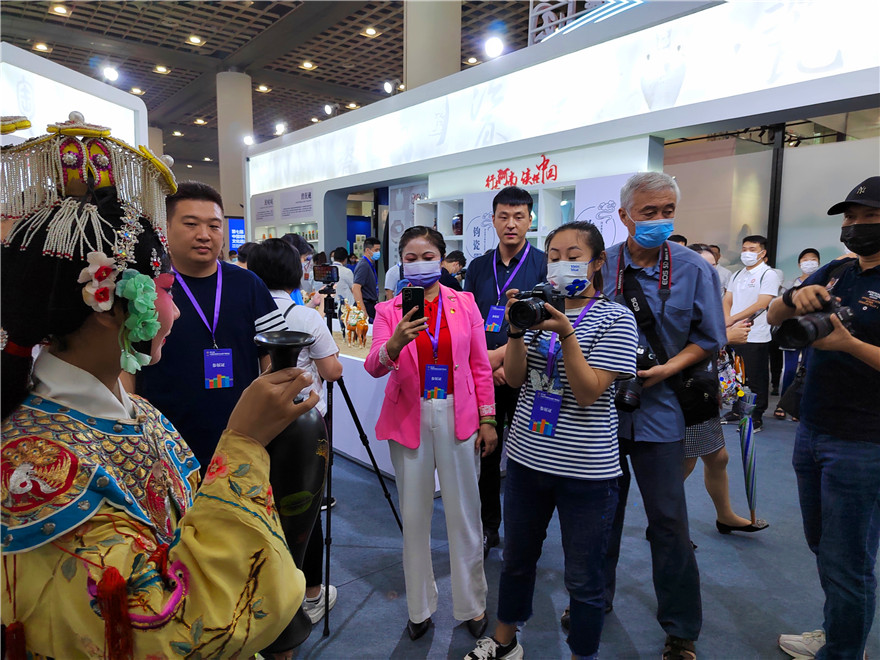 中國(guó)非物質(zhì)文化遺產(chǎn)博覽會(huì),每?jī)赡昱e辦一屆,是非遺領(lǐng)域的全國(guó)性重要品牌活動(dòng),已成為展示非遺保護(hù)成果、宣傳非遺保護(hù)理念、引領(lǐng)非遺保護(hù)工作的重要平臺(tái)。本屆非物質(zhì)文化遺產(chǎn)博覽會(huì)為期5天,河南省有16個(gè)非遺項(xiàng)目、4個(gè)非遺美食企業(yè)參展,布置在文化底蘊(yùn)深厚的“行走河南·讀懂中國(guó)”展區(qū)。淮陽(yáng)黑陶、仰韶彩陶、唐三彩、魯山窯、汝瓷、鈞瓷、登封窯、當(dāng)陽(yáng)峪絞胎瓷、澄泥硯、??h泥咕咕燒制技藝在展廳一一亮相?;搓?yáng)黑陶燒制技藝省級(jí)傳承人張輝攜帶的部分作品以大氣、精美的文化底蘊(yùn)深深吸引著人們觀(guān)賞,各派非遺戲曲傳人也紛紛捧起他的黑陶作品展示中原古老的黑陶藝術(shù)文化。②15