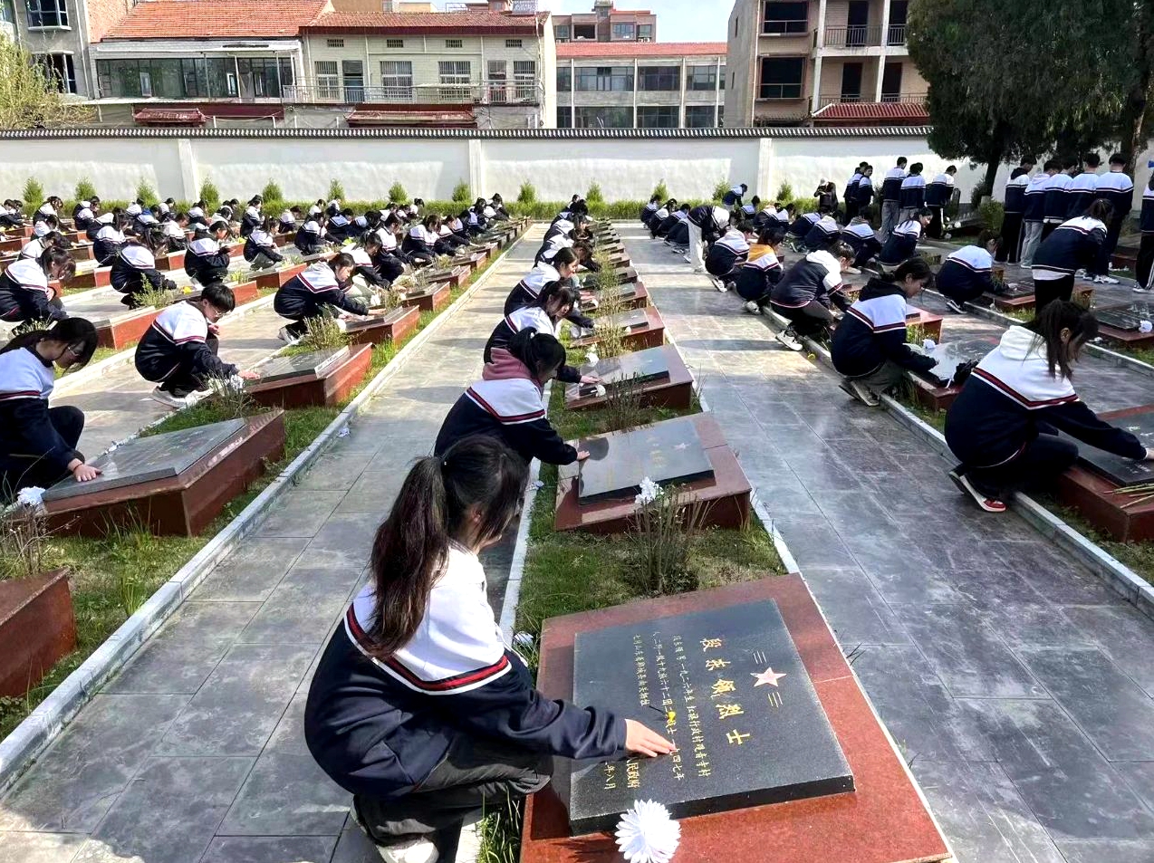 當(dāng)日上午,鄲城縣第三高級中學(xué)為悼念革命烈士,緬懷先烈的豐功偉績,教育學(xué)生弘揚(yáng)民族精神,加強(qiáng)愛國主義教育,組織師生到鄲城縣烈士陵園開展“清明祭英烈 ”為主題的清明節(jié)祭掃活動(dòng)。