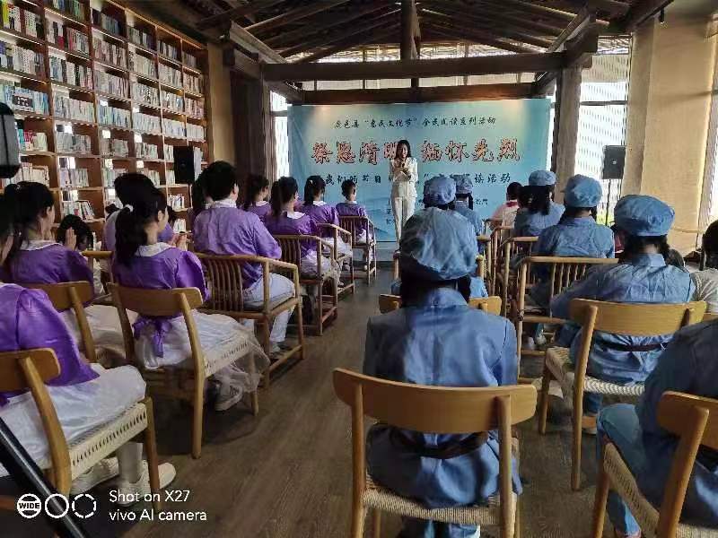 活動(dòng)由該縣文化廣電和旅游局主辦,縣圖書(shū)館承辦,旨在緬懷追憶革命先烈英雄事跡,持續(xù)深化“惠民文化節(jié)”全民閱讀系列活動(dòng),向青少年學(xué)生普及清明節(jié)文化知識(shí)。當(dāng)日,在該縣圖書(shū)館三樓,縣圖書(shū)館工作人員講述全縣部分革命先烈英雄事跡和悲壯故事;縣文化廣電和旅游局工作人員講解清明節(jié)由來(lái)、清明節(jié)習(xí)俗、清明節(jié)為什么要文明祭祀、清明節(jié)為什么要祭祀和掃墓等知識(shí);身著“小八路軍裝”的青少年學(xué)生依次登臺(tái),聲情并茂地朗誦《中國(guó)人清明節(jié)》《清明的雨》《我愛(ài)你中國(guó)》《鄉(xiāng)愁》《清明詩(shī)詞》《不朽》《青松禮贊》《穿越時(shí)空的對(duì)話》等經(jīng)典詩(shī)詞,表達(dá)對(duì)革命先烈的無(wú)限崇敬和緬懷。
