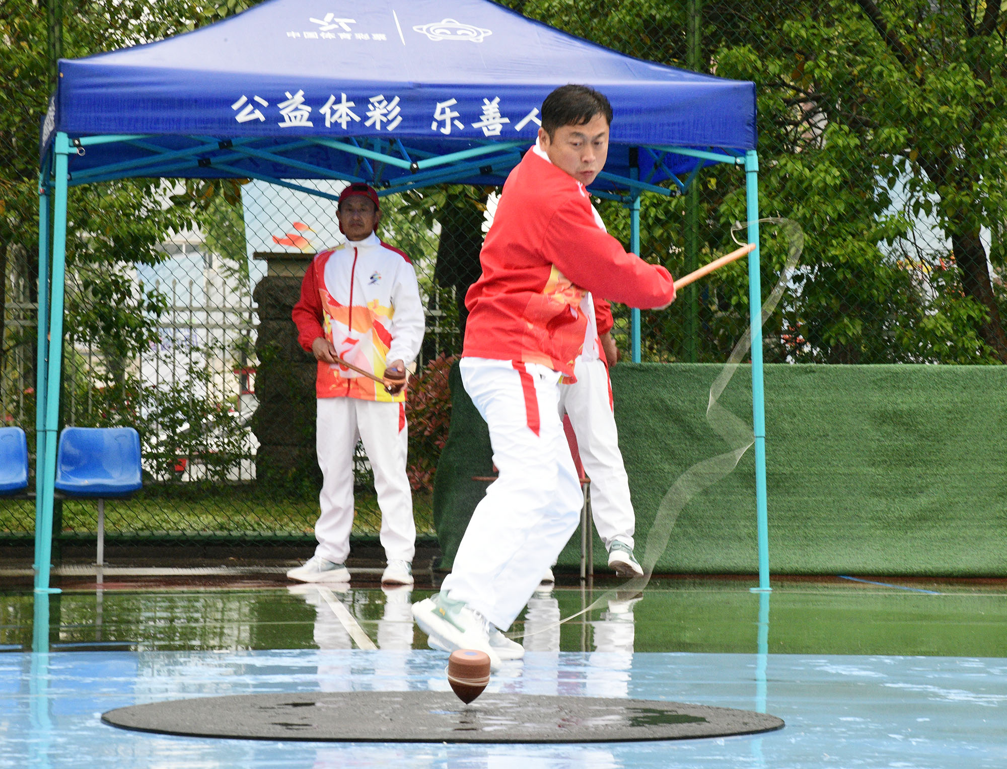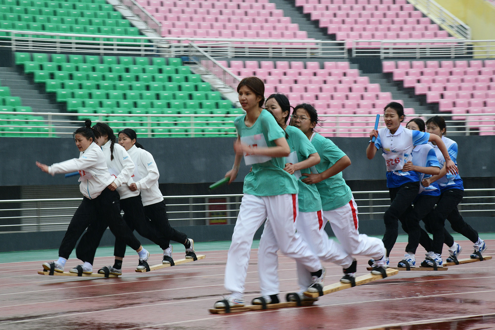 4月23日上午,河南省第九屆少數(shù)民族傳統(tǒng)體育運動會開賽。圖為在市體育中心進(jìn)行的板鞋競速和陀螺比賽。記者 梁照曾 攝
