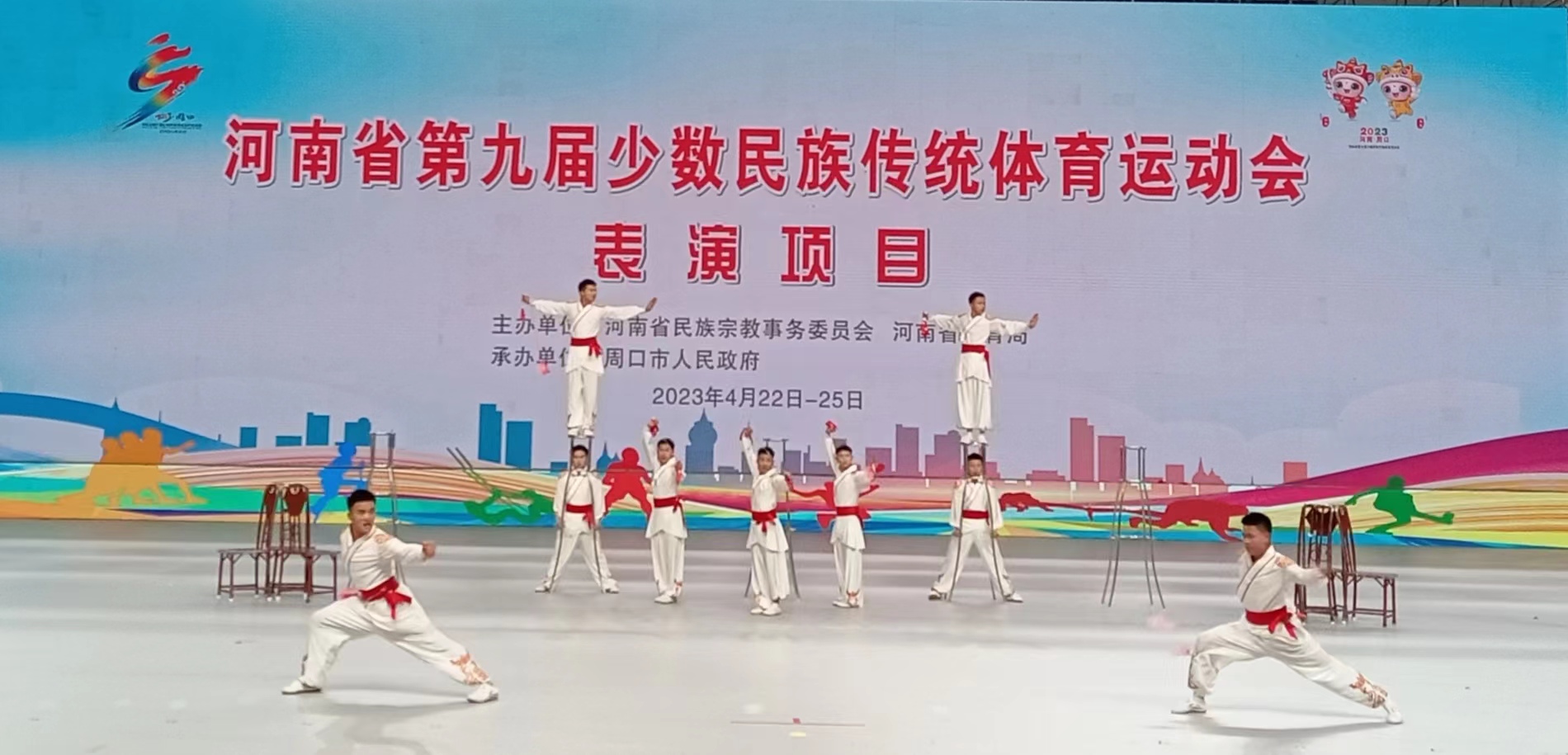 鄭州市代表隊的《少年強》、焦作市代表隊的《太極拳》、周口市代表隊的《心意六合拳》《生生不息》等9個代表隊的11個表演項目獲得第九屆全省民族運動會表演項目綜合類一等獎。