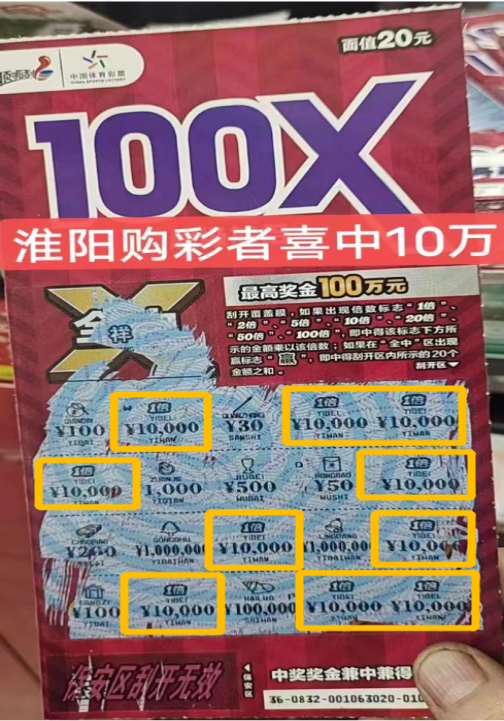 據(jù)悉,王先生所在的淮陽區(qū)新站鎮(zhèn)上只有一家編號為4116260032的體彩實體店,由于離自己居住的地方較近,每次路過這家體彩實體店就喜歡挑幾張體彩頂呱刮來試試手氣。當天,王先生如往常一樣來到這家體彩實體店,在實體店代銷者的推薦下王先生挑選了幾張最近新上市的面值為20元的“超級加倍II”。沒想到其中一張竟刮出了10萬元大獎,王先生激動地連忙找實體店代銷者確認,經過認真核對王先生確實是中得10萬元大獎。
