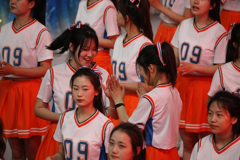 開幕式圓滿完成,參與表演的演員們高興地玩起游戲。記者 劉俊濤 攝