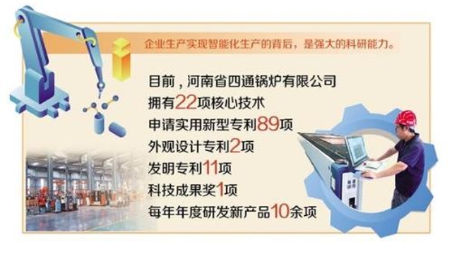 從昔日的“小作坊”式企業(yè)到現(xiàn)在的國(guó)家級(jí)專精特新“小巨人”企業(yè),位于太康縣開(kāi)發(fā)區(qū)的河南省四通鍋爐有限公司經(jīng)歷了從小到大、從弱到強(qiáng)的發(fā)展過(guò)程,先后獲得“國(guó)家高新技術(shù)企業(yè)”“國(guó)家服務(wù)型制造示范企業(yè)”“國(guó)家綠色工廠”“河南省智能制造標(biāo)桿企業(yè)”“河南省服務(wù)型制造標(biāo)桿企業(yè)”“河南省質(zhì)量標(biāo)桿企業(yè)”等榮譽(yù)稱號(hào)。