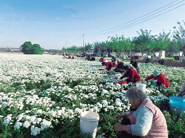 秋菊有佳色,裛露掇其英。11月7日上午,記者走進(jìn)鹿邑縣宋河鎮(zhèn)張辛村,映入眼簾的是一片絢爛的菊花海洋,一團(tuán)團(tuán)、一簇簇的菊花競(jìng)相盛開,伴著習(xí)習(xí)秋風(fēng),輕輕搖曳,淡雅的菊香溢滿田野。黃澄澄的菊花叢中,村民們正忙著采摘,大家邊聊邊忙活,呈現(xiàn)出一派繁忙的景象。