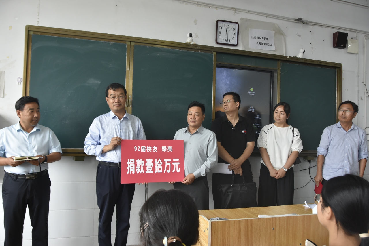 梁亮在發(fā)言中回憶了自己在母校求學時的點點滴滴,他感恩母校老師當年的辛勤培養(yǎng),解釋了捐贈的初衷,并莊嚴承諾:只要自己的企業(yè)不倒閉,就會把這項公益事業(yè)一直做下去。他希望“大梁班”全體同學聽老師的話,做規(guī)范的事。不怕苦,不怕累,找對學習方法,合理分配時間,想法設(shè)法提高學習效率,抵制一切不良誘惑,一心用在學習上。他祝愿全體同學都能考入自己理想的大學,一定會實現(xiàn)自己的夢想!